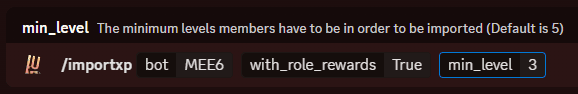 For example, if you have many users who are all on level 1 because they only ever spoke 2 words on your server, the import will skip them entirely. This is mainly useful for large servers (Over ~1,000 members) who might have many unnecessary users in their leveling leaderboard. This helps reduce the overall processing the bot needs to do.