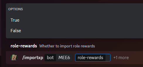 Click on True in order to import the role rewards, or False if you just want to import the levels.