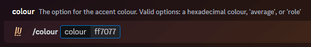 | Hex Code (e.g. #2ecc71) | Sets the colour to your custom hex colour code |